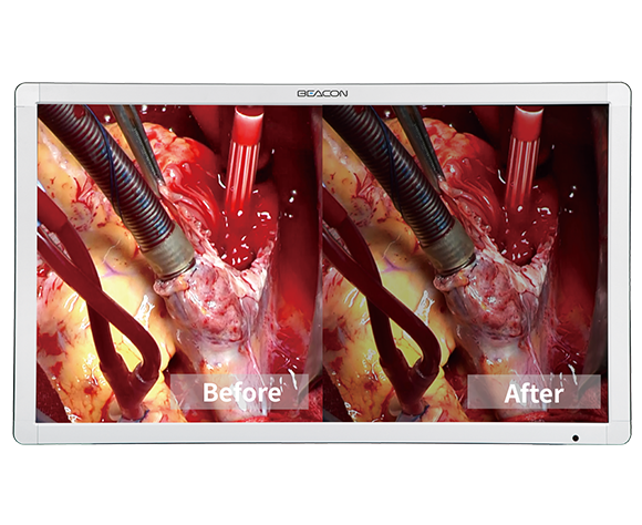L’amélioration optique innovante par la liaison sous vide entre l’écran LCD et l’écran de protection amplifiera la performance de l’image pour éliminer la réflexion lumineuse et augmenter le rapport de contraste comme objectif principal et améliorer la luminance La netteté de la couleur pour convenir à l’imagerie chirurgicale dédiée.